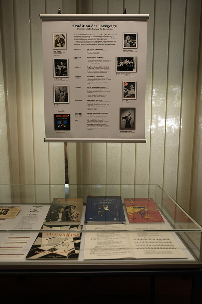Die Ausstellung präsentiert unter den Titeln „Der Klassikgeiger“, „Der Jazzgeiger“ und „Der Zaubergeiger“ Zacharias’ wichtigste Stil- und Wirkungsbereiche. Dokumente zum kulturhistorischen Kontext, vor allem während seines Wirkens in Hamburg, umrahmen die Präsentation.