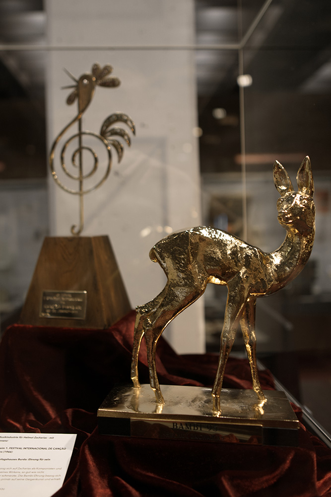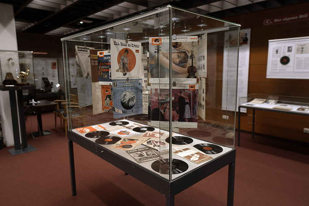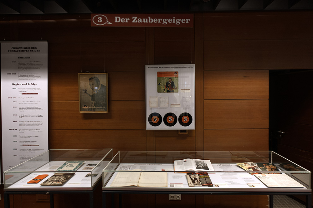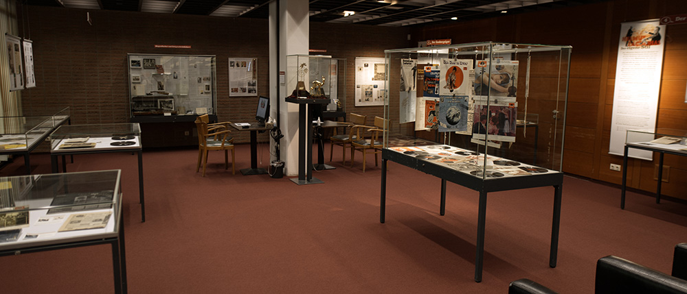 In zwei Multimedia-Stationen können Ton- und Videosequenzen angesteuert werden. Als Exponate dienen Noten, Fotos, Plattenhüllen, Zeitschriftenartikel, Konzertplakate, Briefe, Preisverleihungsdokumente u.v.m.